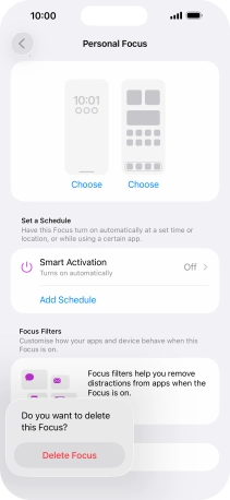 Press the required setting below "Set a Schedule" and follow the instructions on the screen to set up automatic activation of the selected focus mode.