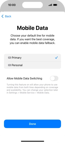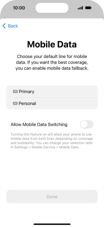 Press the indicator next to "Allow Mobile Data Switching" to turn the function on or off.