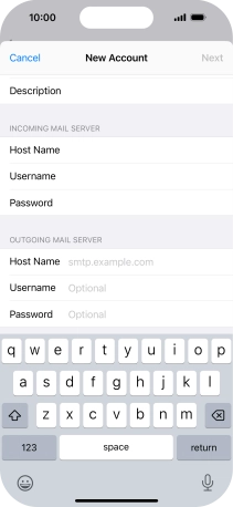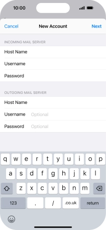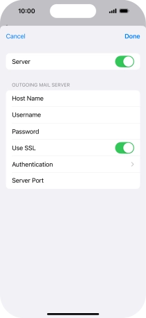 Press Host Name and key in the name of your email provider's outgoing server.