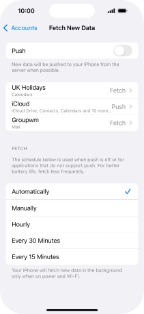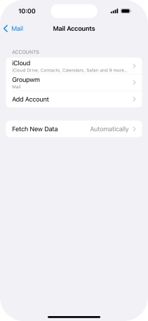 Press the required email account and follow the instructions on the screen to select settings for the specific account.