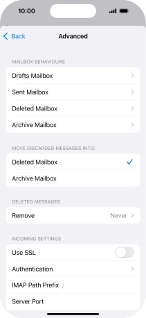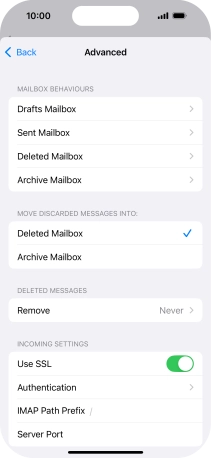 Press the name of the email account you've just set up.