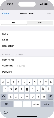 Press Host Name and key in the name of your email provider's incoming server.