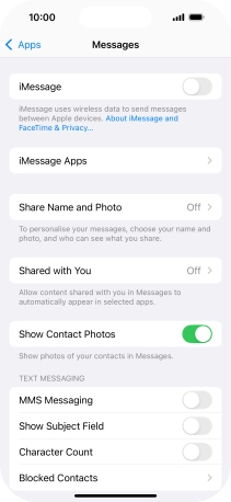 Press the indicator next to "MMS Messaging" to turn on the function.
