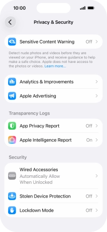 Press Privacy & Security.