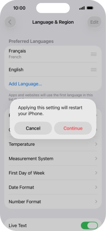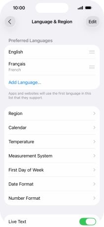 To subsequently select another language as the default language, press the move icon next to the required language and drag it to the top of the list.
