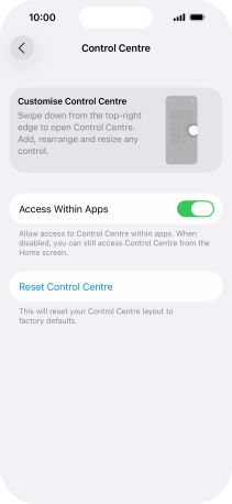 Using Control Centre, you can get quick access to selected functions on your phone.
