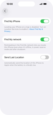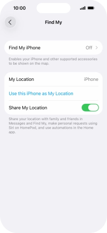 Select settings for Find My iPhone on your Apple iPhone 16 iOS 26