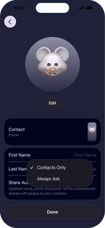 Press the name fields and follow the instructions on the screen to edit your name on the Contact Poster.