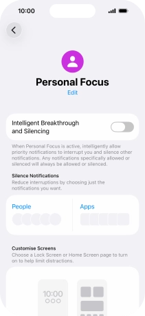 You can select which apps and widgets to be displayed on the lock and home screen in the selected focus mode. See how to select lock screen settings.