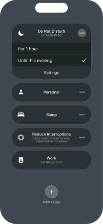 You can set your phone to activate the selected focus mode for a specified period of time, at a specific location or while using a specific app.