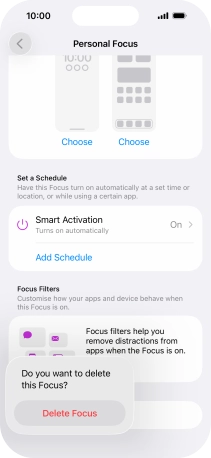 Press the required setting below "Set a Schedule" and follow the instructions on the screen to set up automatic activation of the selected focus mode.