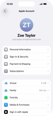 Press Apple Account.