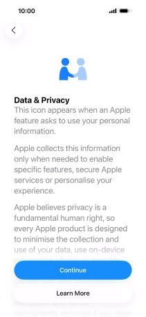 Select the required text and icon size on your phone and press Continue.