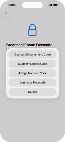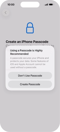 Follow the instructions on the screen to turn on use of phone lock code or press Don't Use Passcode.