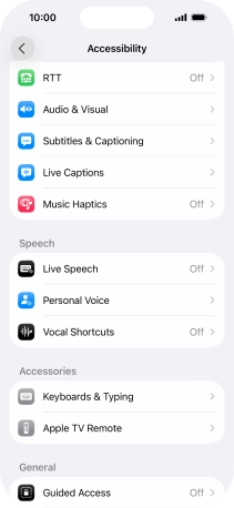 You can select different spoken assistance settings, e.g. Live Speech and Personal Voice, which make it easier for people with speech difficulties to communicate with others e.g. during voice or video calls.