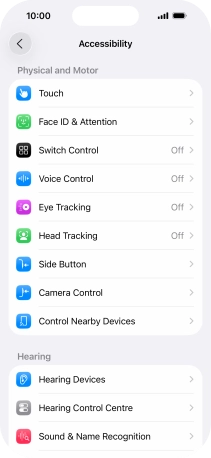 You can select different settings for phone interaction control, e.g. AssistiveTouch, Voice Control, Eye Tracking and Camera Control making it easier to navigate your phone.