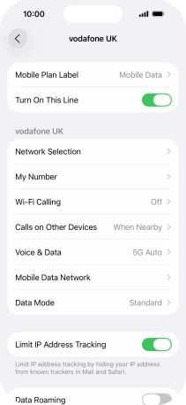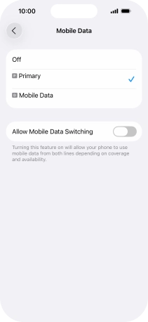 Press the indicator next to "Allow Mobile Data Switching" to turn the function on or off.