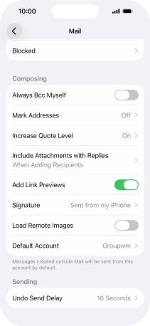 If you've set up more than one email account on your phone, you can select a default email account. When you send an email message from one of your phone's applications, the default account will be used unless you're asked to select an account before sending the email message.