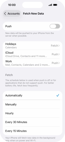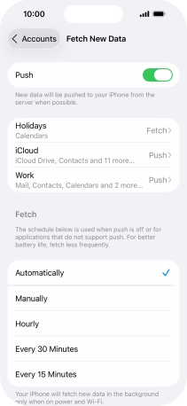 9. Select setting for retrieval of new email messages