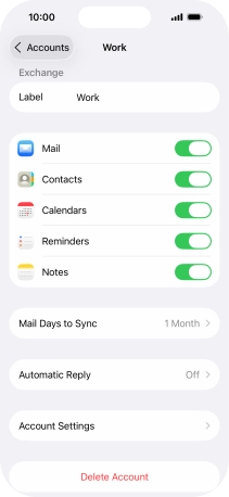 Press the name of the Exchange email account you've just set up.