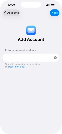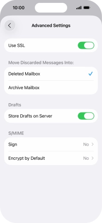 Press the required email account and follow the instructions on the screen to select settings for the specific account.