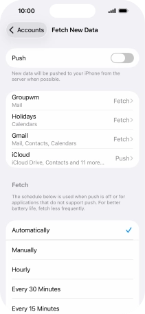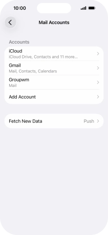 Press the required email account and follow the instructions on the screen to select settings for the specific account.