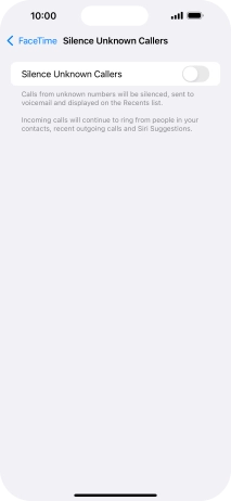Press the indicator next to "Silence Unknown Callers" to turn the function on or off.
