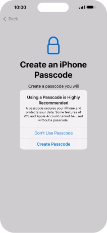 Follow the instructions on the screen to turn on use of phone lock code or press Don't Use Passcode.