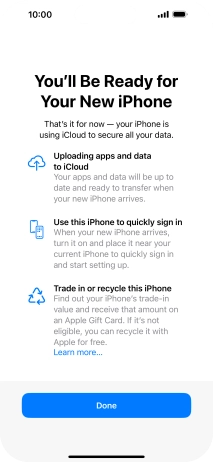 Press Done and follow the instructions on the screen to select the required settings and back up the phone memory to iCloud. Once you've received your new iPhone, you'll be able to restore the content of the iCloud backup.