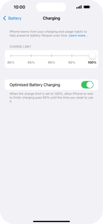 Press the indicator next to "Optimised Battery Charging" to turn the function on or off.
