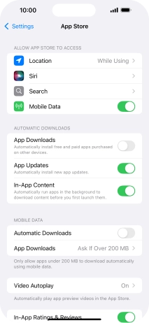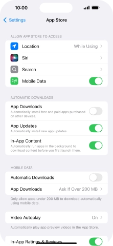 Press the indicator next to "Automatic Downloads" to turn the function on or off.