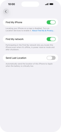 Press the indicator next to "Send Last Location" to turn the function on or off.