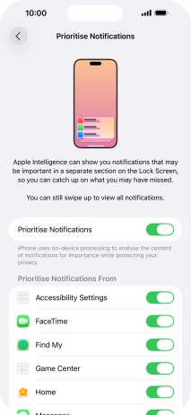 You can use Apple Intelligence to prioritise important and time-sensitive notifications. High priority notifications appear at the top of the notification list. To use the function, you need to turn on Apple Intelligence.