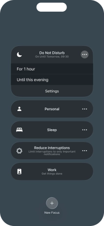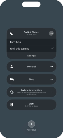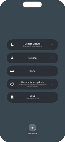 You can set your phone to activate the selected focus mode for a specified period of time, at a specific location or while using a specific app.