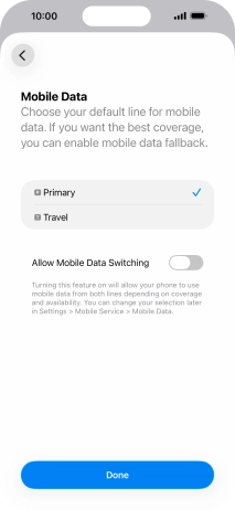 Press the indicator next to "Allow Mobile Data Switching" to turn the function on or off.