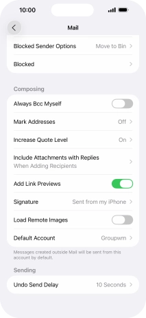 Select default email account on your Apple iPhone 16 Plus iOS 26