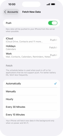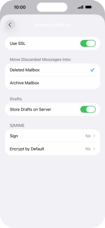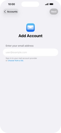 Press the required email account and follow the instructions on the screen to select settings for the specific account.