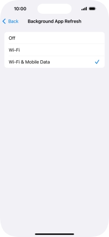 To turn on background refresh of apps using mobile network, press Wi-Fi & Mobile Data.
