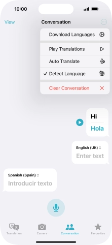 To translate speech, press the microphone icon and say the required word or sentence.