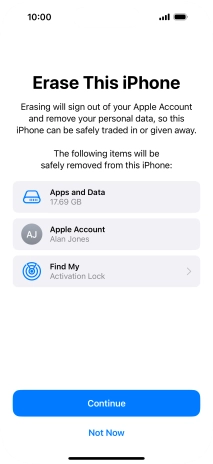 Key in the password for your Apple ID and press Turn Off. Wait a moment while the factory default settings are restored. Follow the instructions on the screen to set up your phone and prepare it for use.