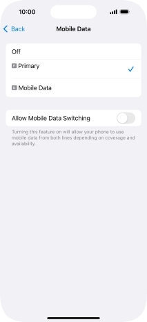 Press the indicator next to "Allow Mobile Data Switching" to turn the function on or off.