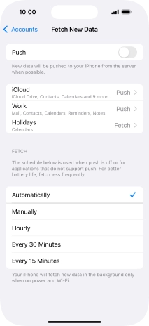 8. Select setting for retrieval of new email messages