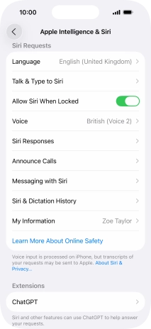 Press Apple Intelligence & Siri.