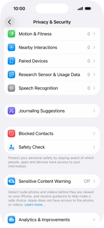 Turn Sensitive Content Warning on your Apple iPhone 16 Pro iOS 26 on or off