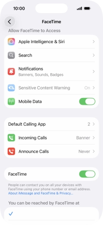 Press the indicator next to "FaceTime" to turn the function on or off.