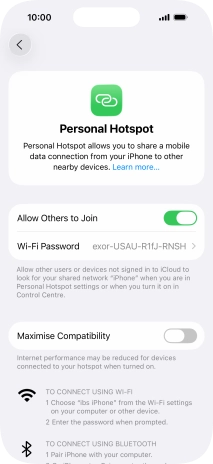 5. Establish connection to personal hotspot from another device