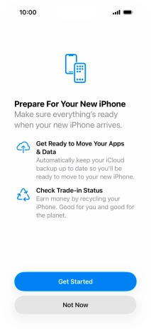 Press Get Started and follow the instructions on the screen to select the required settings and back up the phone memory to iCloud. Once you've received your new iPhone, you'll be able to restore the content of the iCloud backup.