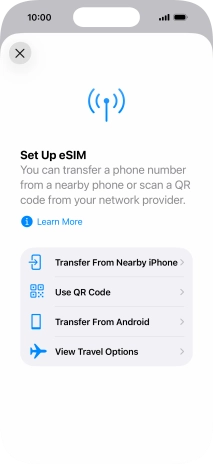 Place the QR code you've received inside the phone camera frame to scan the code. Your eSIM is transferred to your new phone over the internet.