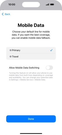 Press the indicator next to "Allow Mobile Data Switching" to turn the function on or off.