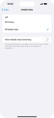 Press the indicator next to "Allow Mobile Data Switching" to turn the function on or off.